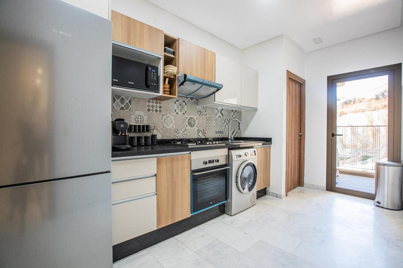 Ideally located in the centre of Agadir, App Haut Standing Av Mohamed V offers a balcony, air conditioning, free WiFi and flat-screen TV. It is situated less than 1 km from Marina Agadir and offers a lift. The property is non-smoking and is500 metres from Agadir Beach.