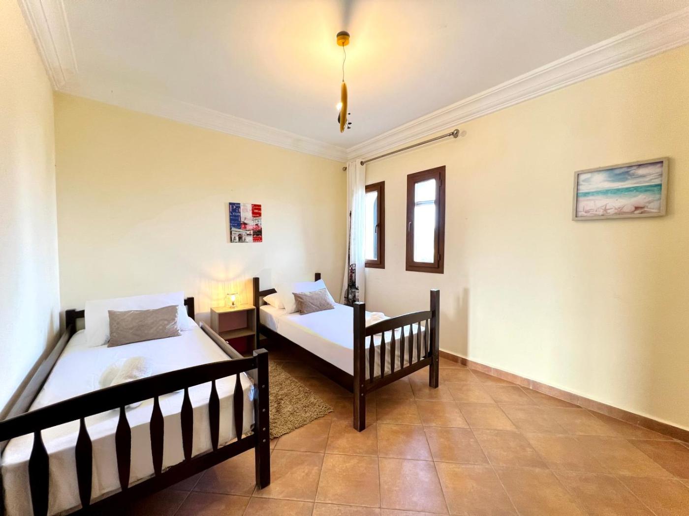 Two-Bedroom Apartment with Pool View. Guests will have a special experience as the apartment offers a private pool. This spacious apartment consists of 2 living rooms, 2 separate bedrooms and 2 bathrooms with a shower and a hairdryer. Guests can make meals in the kitchen that is equipped with a stovetop, a refrigerator, kitchenware and an oven. The air-conditioned apartment provides a flat-screen TV with satellite channels, a washing machine, soundproof walls, a dining area as well as sea views. The unit offers 7 beds.