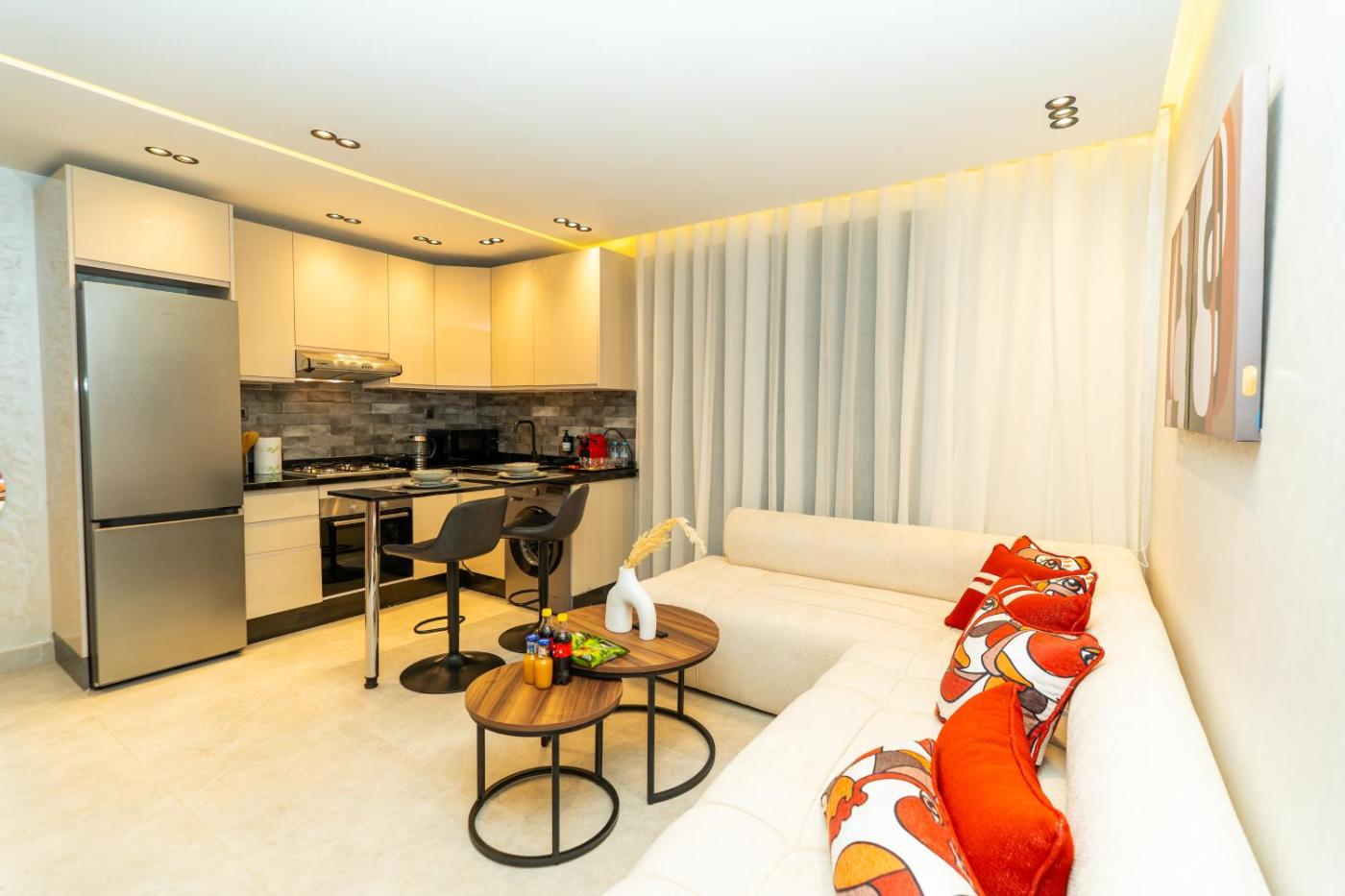 One-Bedroom Apartment. Boasting 1 bedroom and 1 bathroom, this apartment has a living room and terraceyou can relax. The apartments kitchen is available for cooking and storing food. This apartment has air conditioning, a washing machine, a flat-screen TV and a balcony. The unit offers 2 beds.
