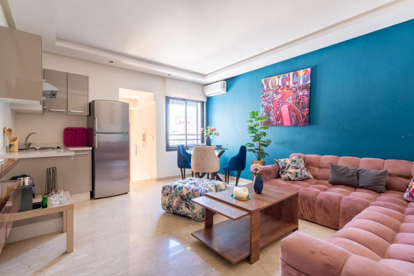 Set in Casablanca, 4.6 km from Anfa Place Living Resort and 5.4 km from Hassan II Mosq, Terrasses de Marrakech- Au coeur de Casablanca offers air conditioning. This property offers access to a terrace and free private parking. Casablanca Cathedral is 1.9 km away and Casa Port Railway Terminal is 3.2 km from the apartment.