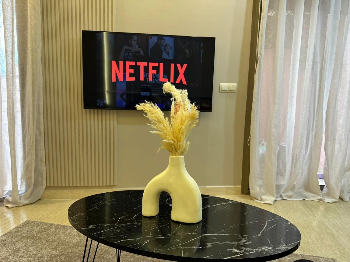 One-Bedroom Apartment. The apartments kitchen, which features a tea and coffee maker, is available for cooking and storing food. This air-conditioned apartment consists of a dining area, a flat-screen TV with streaming services a washing machine and a terrace. The unit offers 1 bed.