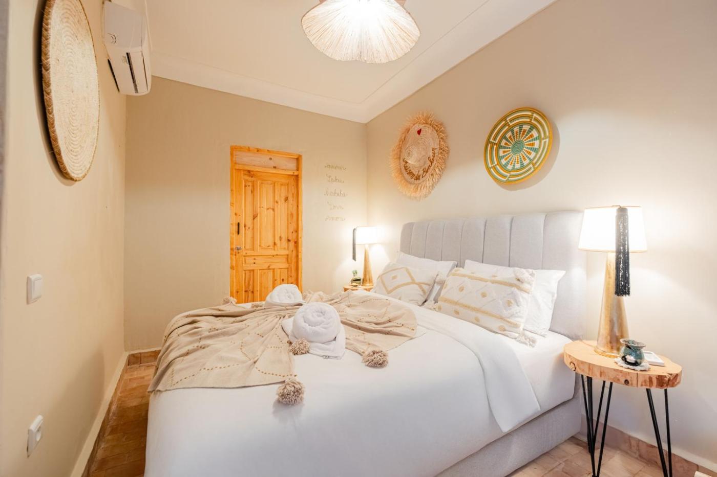 In the centre of Marrakech, located within a short distance of The Orientalist Museum of Marrakech and Boucharouite Museum, Riad Bahia Burgos - Exclusive - Heated Pool & Breakfast - 15 min walk Jemaa El Fnaa offers free WiFi, air conditioning and household amenities such as an oven and coffee machine. The property features garden and city views, and is less than 1 km from Le Jardin Secret. The accommodation provides airport transfers, while a bicycle rental service is also available.