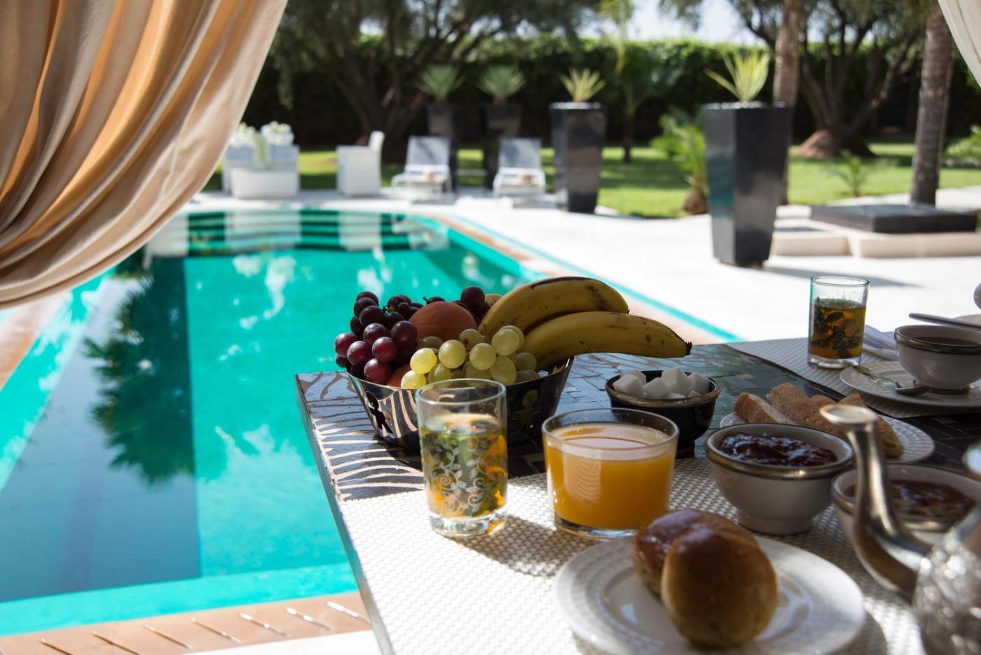Traditional Moroccan dishes are served in the dining room, which features a contemporary décor. Breakfast is prepared every morning at the Villa Mano.