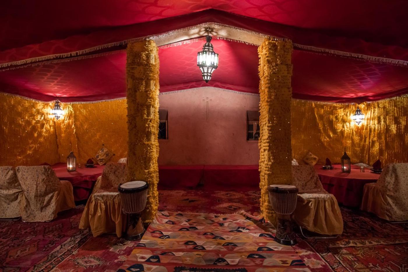 Providing a bar, Rêve du Sahara - Dar Azawad Desert Camp offers accommodation in Mhamid. Guests staying at this luxury tent have access to a fully equipped kitchen and a terrace. The accommodation provides a 24-hour front desk, a shared kitchen and currency exchange for guests.