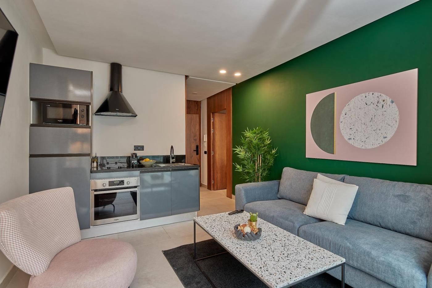 The units in the apartment complex are equipped with air conditioning, a seating area, a flat-screen TV with streaming services, a kitchen, a dining area, a safety deposit box and a private bathroom with a bidet and free toiletries. An oven, a microwave and toaster are also featured, as well as a coffee machine and a kettle. At the apartment complex, the units are fitted with bed linen and towels.