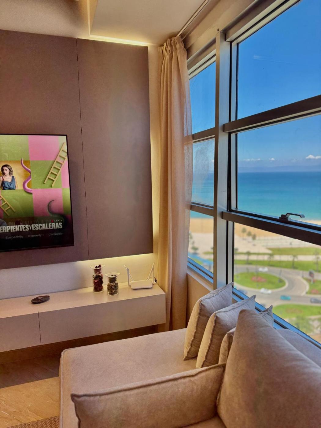 Offering sea views, Vue Mer & Calme 3 CH Tanger is an accommodation situated in Tangier, 600 metres from Tangier Municipal Beach and 800 metres from Tanger City Mall. Both free WiFi and parking on-site are accessible at the apartment free of charge. The property is non-smoking and is located 2.2 km from American Legation Museum.