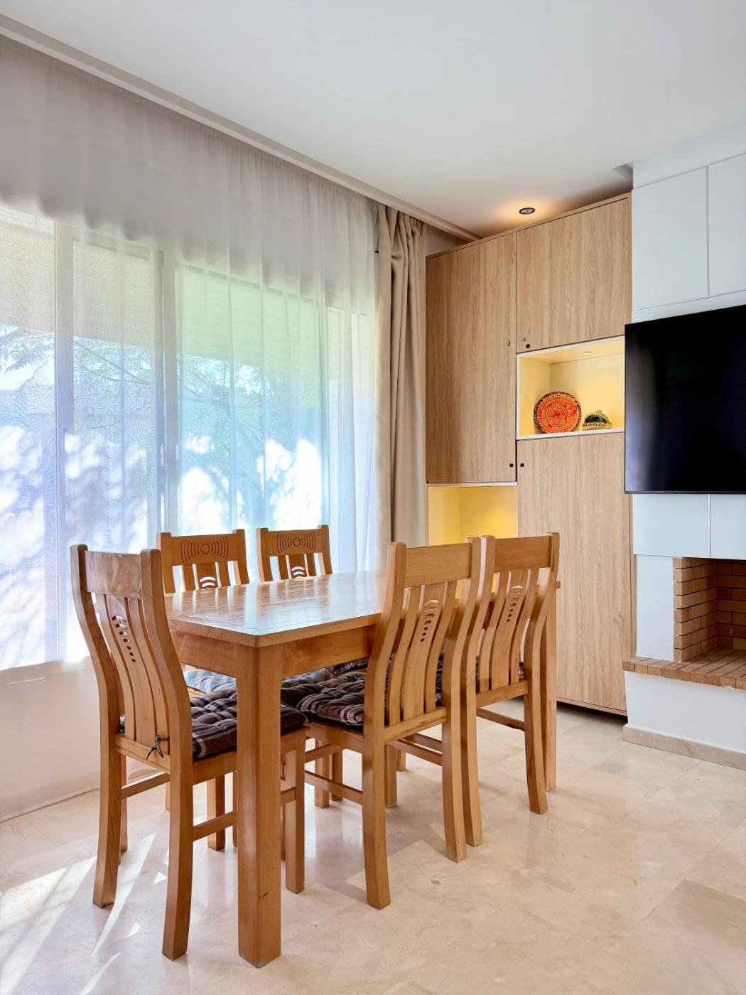Three-Bedroom House. Featuring a private entrance, this air-conditioned holiday home comprises 1 bedroom, 2 bathrooms and a kitchen. Meals can be prepared in the well-fitted kitchen, which comes with a stovetop, a refrigerator, a dishwasher and an oven. The spacious holiday home provides a washing machine, a tea and coffee maker, a dining area as well as a terrace with garden views. The unit offers 1 bed.